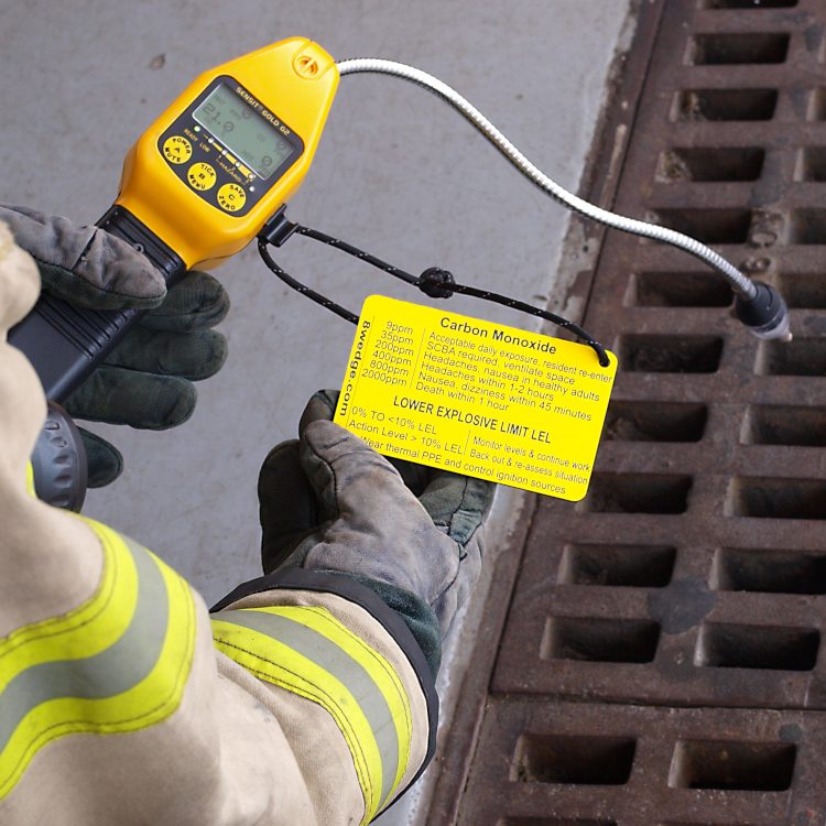 Many departments use single-gas meters depending on their equipment and response needs. These tags act as single-gas reference charts for departments running dedicated monitors.
